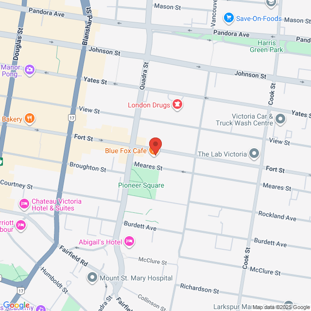 You can access the office from either Fort Street or Meares Street - it's in the same building as the Blue Fox Cafe.